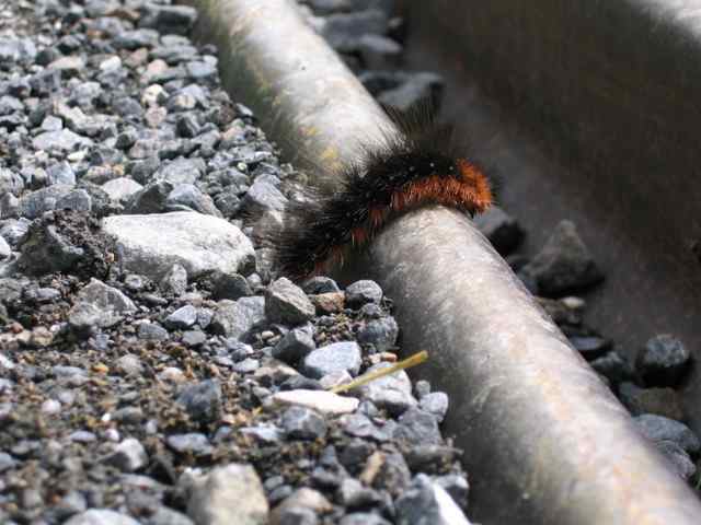 [ A giant caterpillar navigating a water break. ]